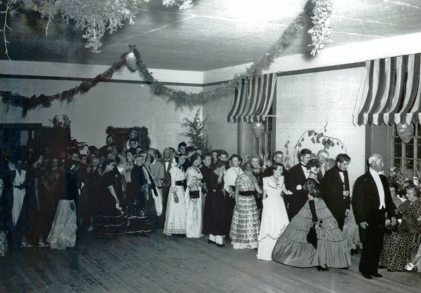 Dinners and dances were the major money makers. Dances usually lasted well past midnight. They featured fiddle music with caller for square and round dances, or big band music, or a special artist, like Slim the Singing Cowboy, or Shamire a Mid-eastern dancer. In the 1930s, admission was $.40, the 1940s $.75, climbing to $.90 in the 1950s. When OHD was revised in the mid-1980s, the price rose to $3.50. There were door prizes, along with prizes for the couple married the longest, who traveled the farthest distance, the best waltz, and a spot dance. The biggest dance event was held in 1951, when everyone was encouraged to down 1851 period dress. That dance's intermission was a trip to Lake Spofford to enjoy a "Lake Spectacle of a myriad of lights floating against the backdrop of illuminated sailboats”.