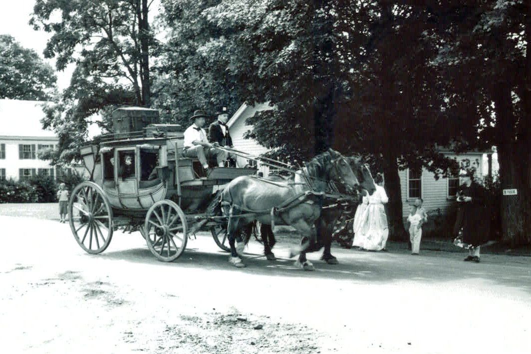 Major events were incorporated. In 1948, the unveiling of Chief Justice Stone’s Birthplace marker had well known state and federal dignitaries attend. (See The Day Dignitaries Came to Town) The 100th Anniversary of the Old Town Hall in 1951 was celebrated with a horse drawn buggy parade featuring the Keene-Brattleboro stage (it was later robbed by horseback riding bandits), and an old-time auction. It was such an extravaganza that some say that it couldn’t be topped, causing the event to petered out around 1958. However, the 200th Anniversary of the Methodist Church revised it for a few years. And the Town’s 250th Anniversary in 2011 resurrected it with numerous gala events including historical skits and a massive parade.