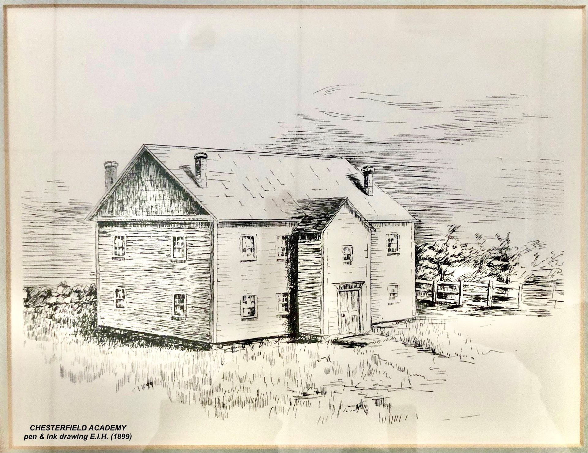 Established in 1790, Chesterfield Academy had an excellent reputation and was ranked second only to Phillips Academy. With no public secondary education available, those wishing to further their studies had to attend private schools. Chesterfield Academy was the first in the region and attracted 70 – 100 students who came from the local area, VT, and MA. Included in CHS archives, is the 1825 class Catalogue (roster). Listed among the 92 of Luther's fellow classmates are E.P. Pierce, Jr and his sister Theresa Jane Pierce, the children of E.P. Pierce, builder of the Stone House Tavern.