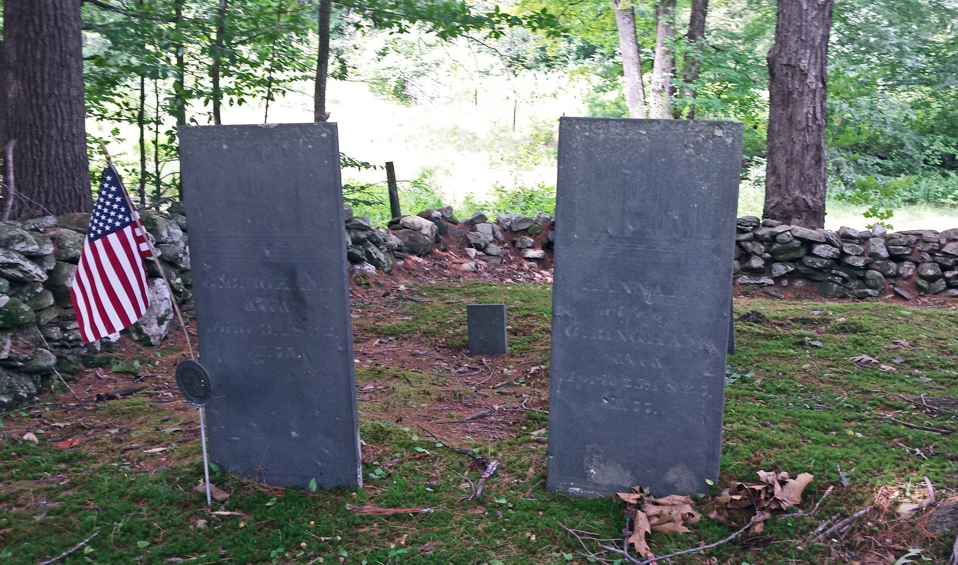 This small burying-ground contends two known graves dated 1812 and 1837. Another stone, dated 1802 is now in the doorstep of a nearby residence. It is located on the west (left) side of Poocham Roadabout .4 miles north of Route 9 in West Chesterfield.