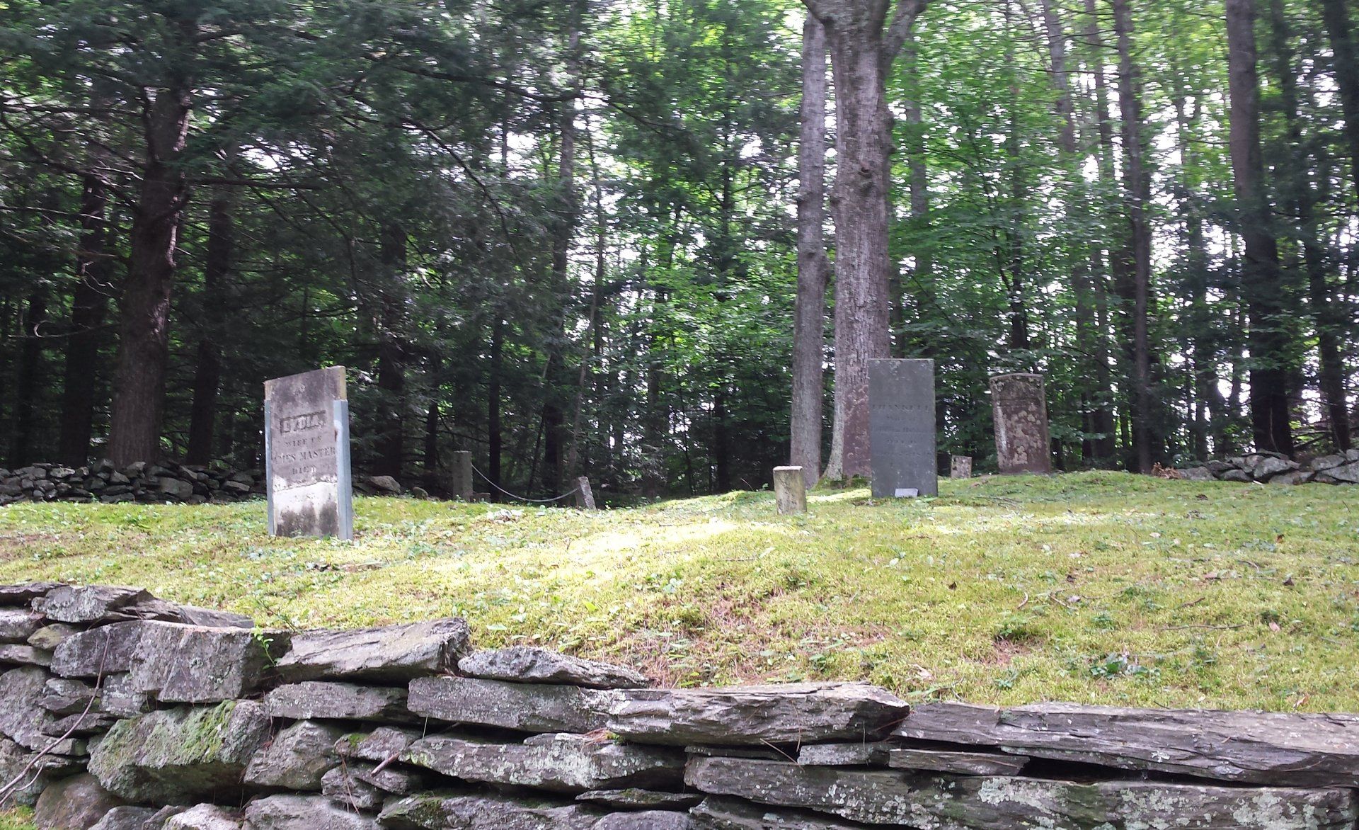 This small burying-ground contains only seven stones dating from 1849 – 1883. It is located at the top of a steep rise, on the south side of North Hinsdale Road, about 1/8 mile southwest of the junction of Route 63.