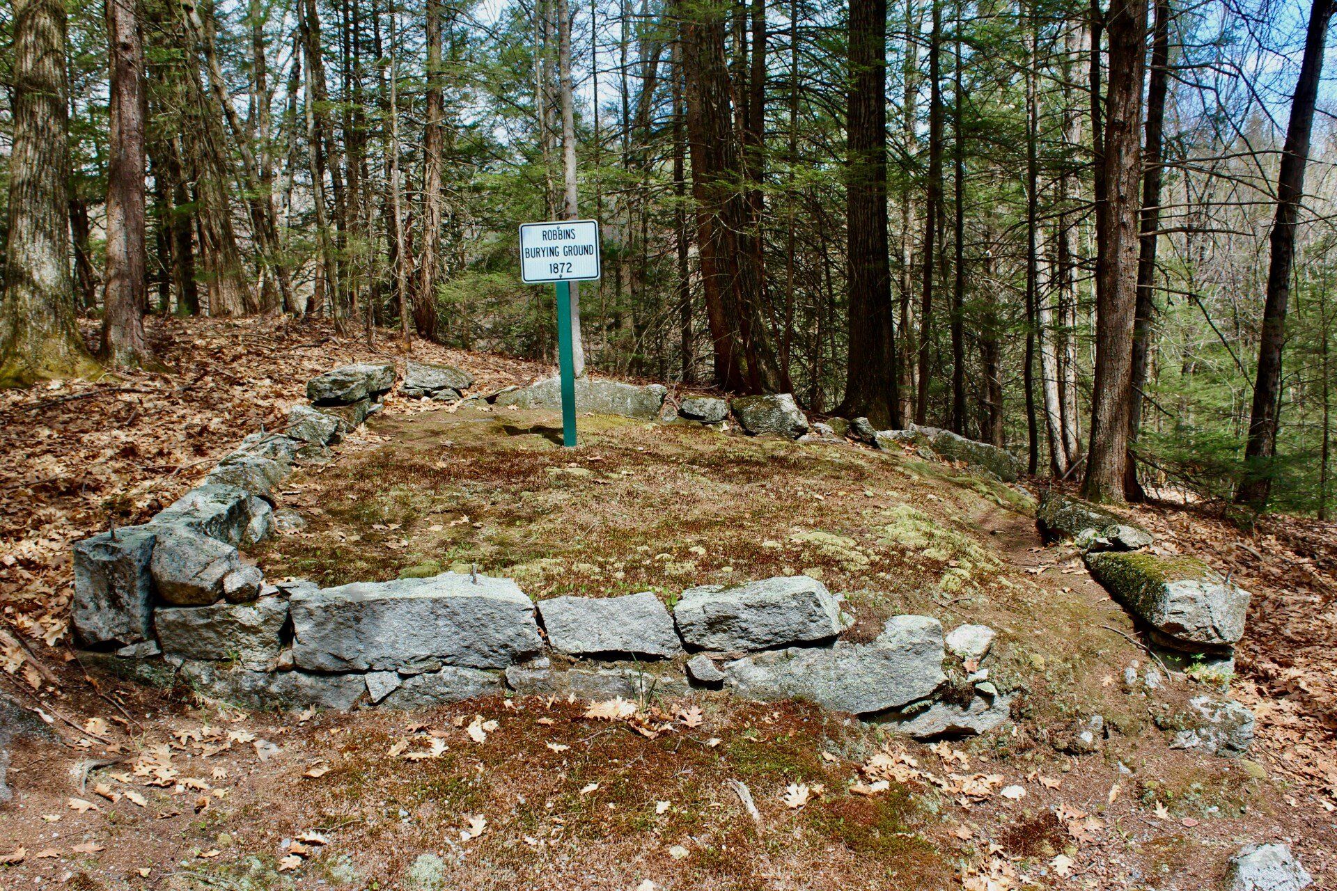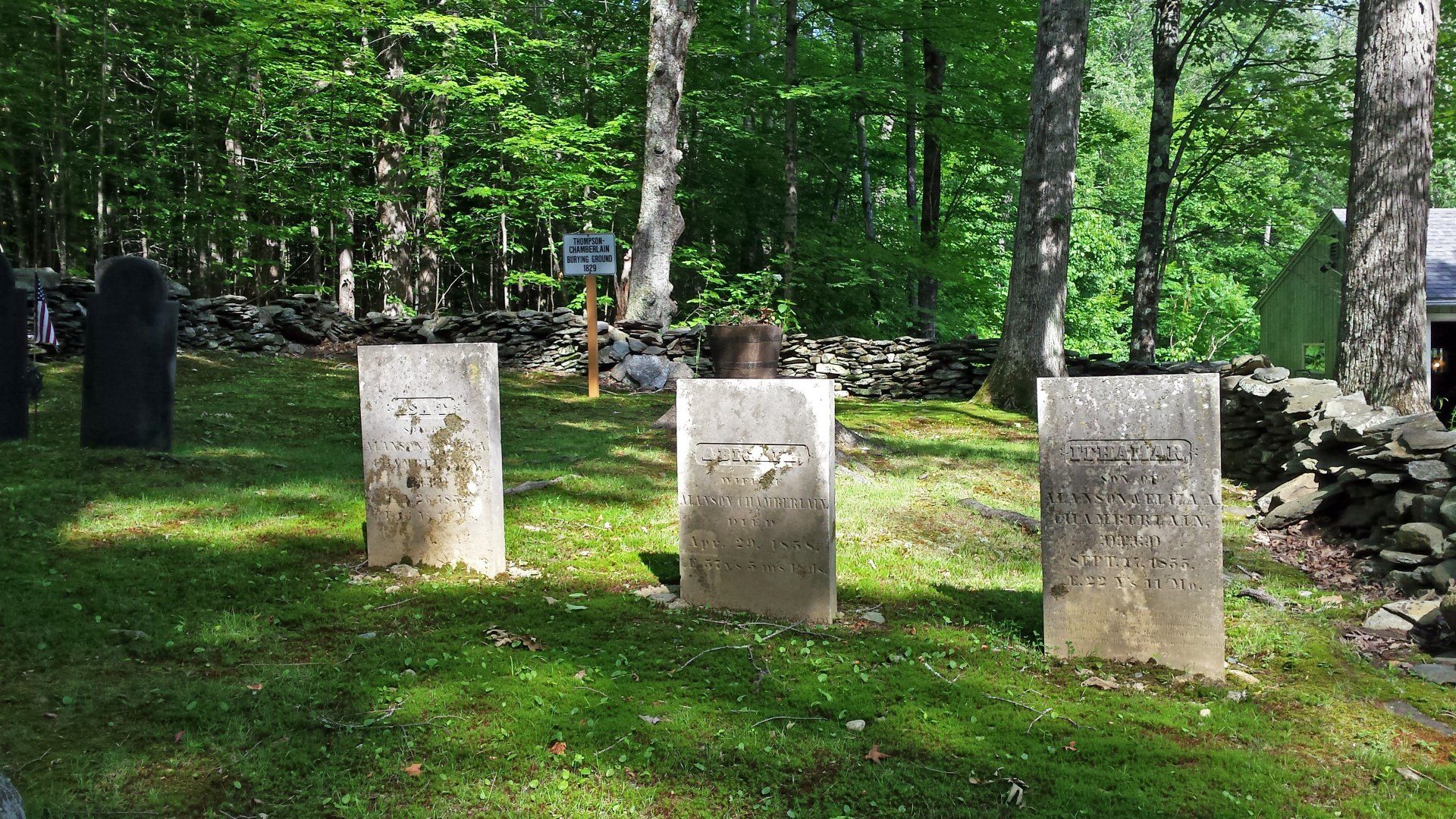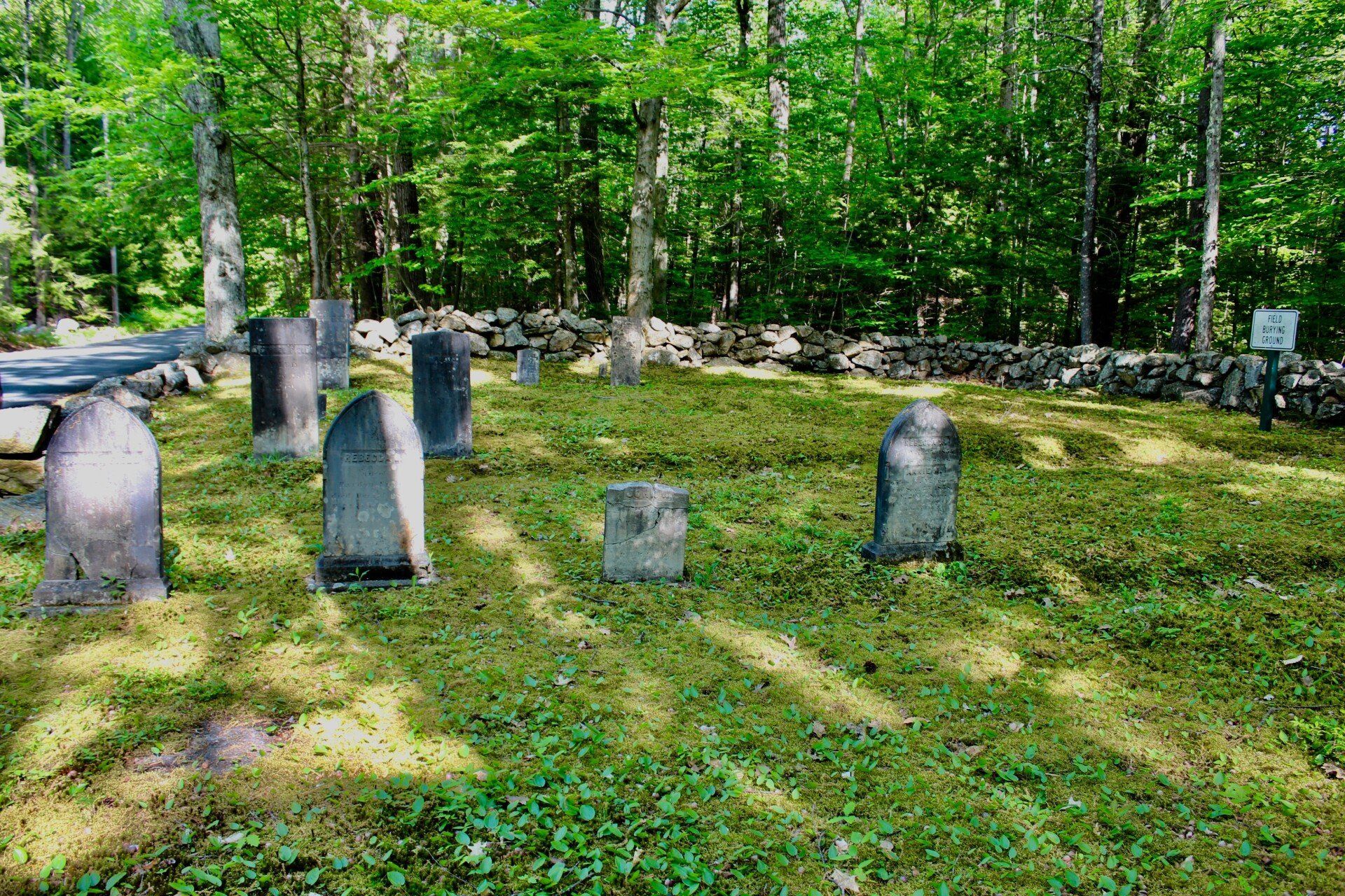 Also known as the Journey’s End, it contains the town’s oldest gravestone, that of Aaron Thomas, who died at the age of seven months in May 1765. His stone sits atop a knoll deep in the woods on private land and overlooking the Connecticut River. The cemetery contains only two stones and no surrounding wall or fence, no entrance road, no formal layout. The graves are considered of great historical interest because they are close by one of the earliest sites to be settled in the town.