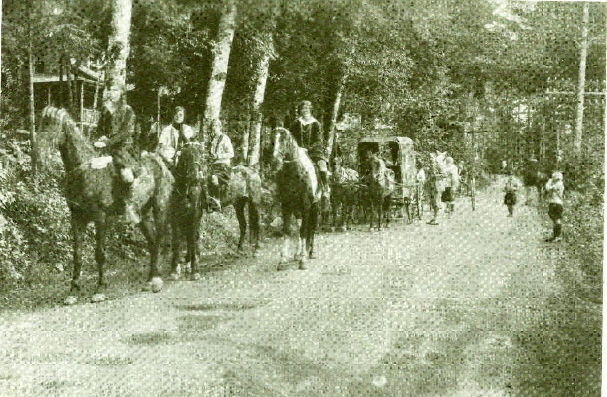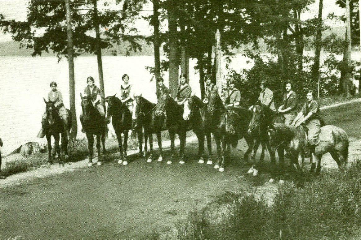 Camp Nitawa offered all the usual camp activities, but especially stressed dancing and dramatics. Every Friday evening a new performance was presented for invited guests, totaling eight per season. Water sports and swimming lessons were provided on their private beach described as shallow, not tricky, and safe for all. Boating and canoeing were offered under “strict safeguards” with multiple trips to nearby “Treasure Island”, plus one around the lake canoe trip per season. Field trips and “Gypsy Trips", were included. These adventures opened the way for nature study, Indian lore, and woodcraft. Horseback riding lessons were extra at $37.50 per season (twenty rides), or $20 for ten. Individual riding lessons were $2.25 each. These had to be paid for in advance. They took place on The Acres, a hill farm site owned by the camp. It was also a favorite place for picnics and field sports.