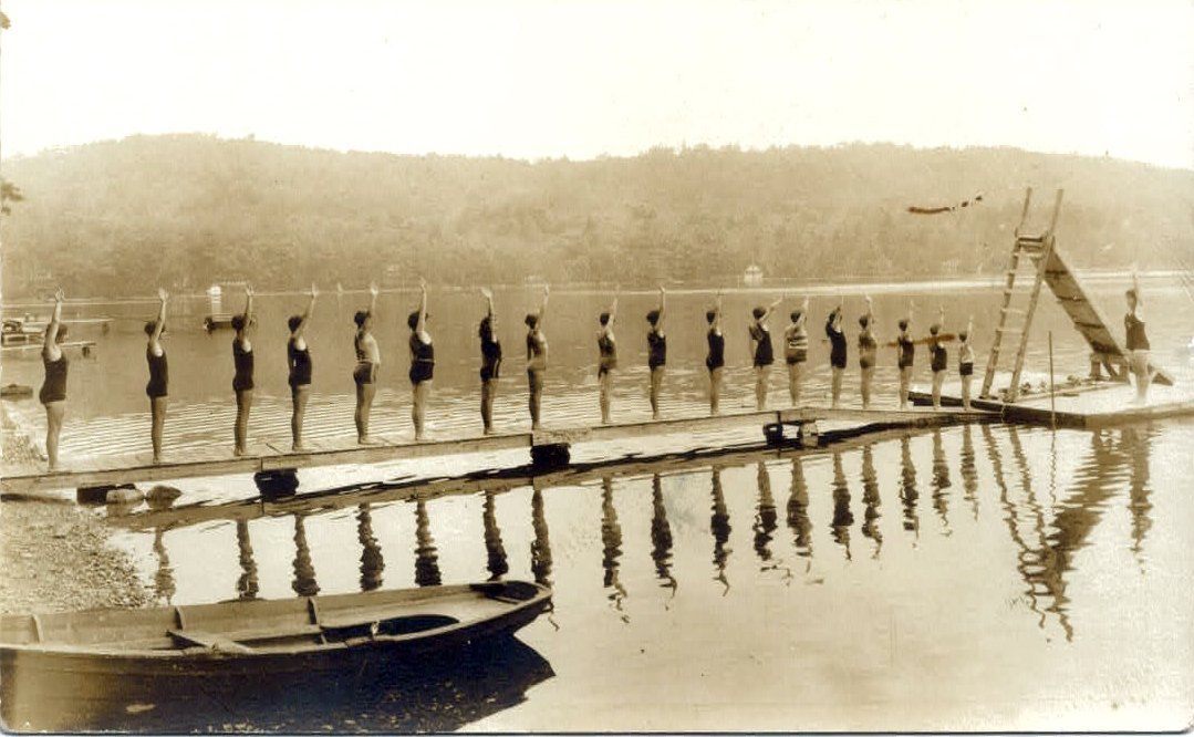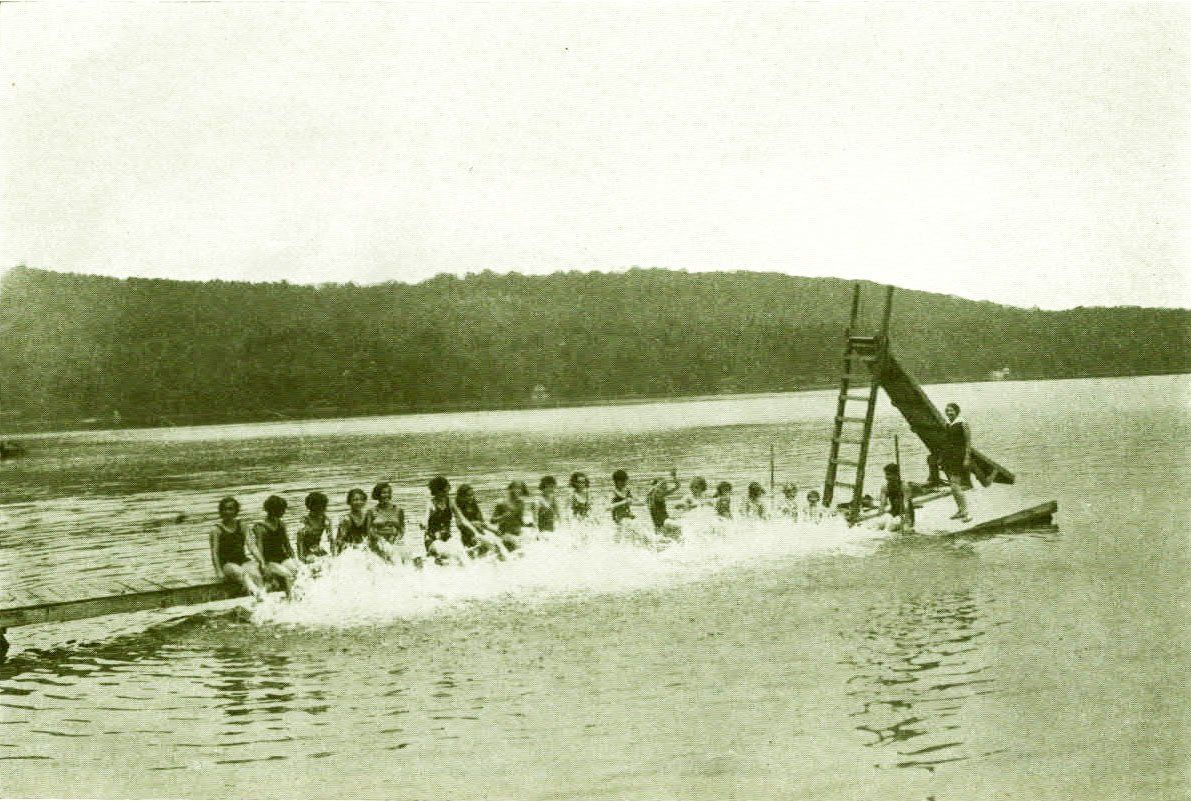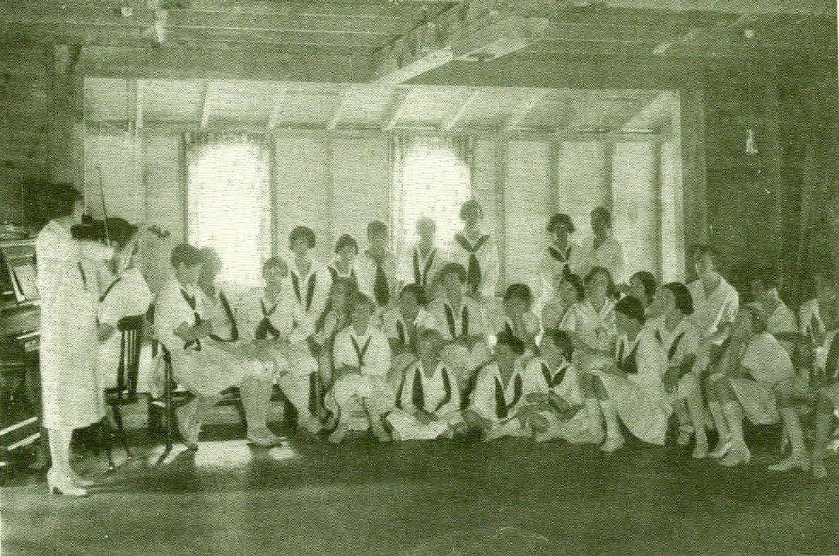 Camp activities started at 9AM with a short inspirational service and announcements. The rest of the morning was interspersed with various age-appropriate activities including swimming with an hour reserved for “self-expression” giving the counselors time get to know their charges. If necessary prearranged tutoring was offered at $1.50 per hour. An after-lunch rest hour was observed and then more activities. Evening brought boating, rehearsals, dancing, and indoor games. The camp had a playroom for the younger children and a library. It also encouraged special interests which included editing the weekly camp paper “The Owl”. (It was mailed out to its subscribers for $1 a season). “Inspiring Sundays” started with a “silent dip” in the lake, a nondenominational service in the outdoor chapel, and a later “silent swim”. Sunday evenings were devoted to classical music, Bible and poetry dramatizations.
