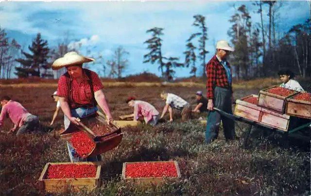 Capt. Henry Hall of Dennis, MA was the first person to cultivate the berry. In 1816, he observed that the wild cranberries in his bogs grew better when sand blew over them. While initially criticized for raising cranberries, the idea eventually caught on. Landowners in southwest MA and especially on Cape Cod eagerly joined in. By 1888, the Cape Cod Cranberry Growers Association had been formed. “Cranberry Fever” was in full force by 1900 and the industry boomed. As late as 1927, the cranberry harvest remained so vital in MA that children could be excused from school to harvest the bogs.