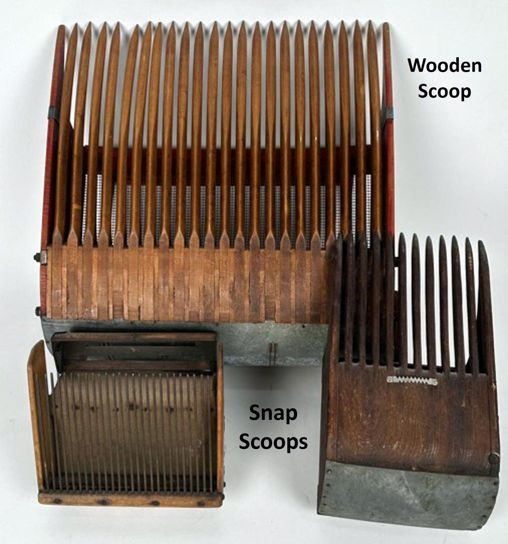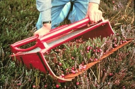 Cranberry harvesting is very labor intensive. As demand increased, new harvesting tools were developed. The harvesting capabilities slowly progressed from intensive backbreaking handpicking to the snap scoop (1887) and the wooden scoop (1890s). Both tools required manually combing the vines while on one’s knees. The first mechanical harvester appeared in 1920 with limited success. In 1947, a walk-behind mechanical dry harvester increased productivity. But it was water harvesting, beginning in the late 1960s, that enabled an increase in harvest volume that expanded the berry's popularity and diversity.