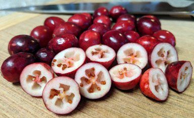 Americans consume cranberries for Thanksgiving as a relish/sauce, in stuffing, in breads, and as part of numerous luscious desserts. A native berry to North America, the cranberry (Vaccinium macrocarpon) was undoubtedly present at the 1621 Plimoth Plantation Harvest Festival. Native Americans have been using these berries as a food, dye, and in medicine for 12,000 years. Cranberries were an important food source throughout its native range, northern North America across Canada, and eastern United States, south to