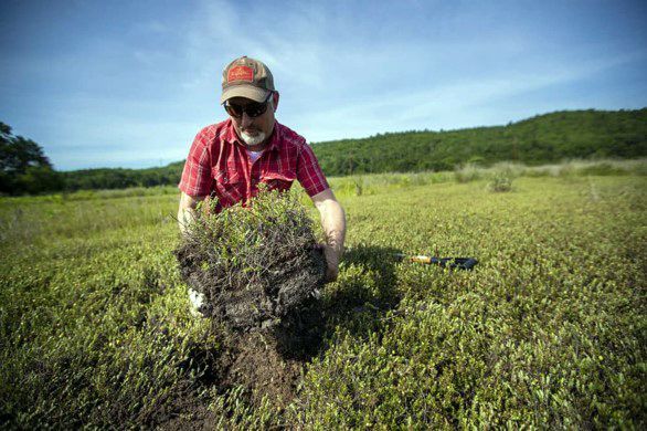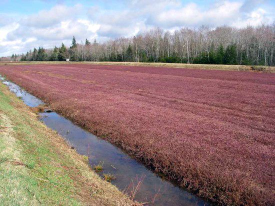 The plant is a perennial of the heath family. It only flourishes in a unique type of marsh soil. Old glacial kettle ponds that filled with sand, clay, and debris created the ideal acidic peat soil and wet conditions needed by the plant. Alternating layers of sand and organic matter are essential in productive cranberry bogs. Commercial growers will add sand to the bed surface every 2-5 years to encourage upright production and to maintain a high-yield. In contrast to normal agricultural soils, cranberry soil requires no tilling. Because the soil remains undisturbed, some plants may thrive for over 100 years.