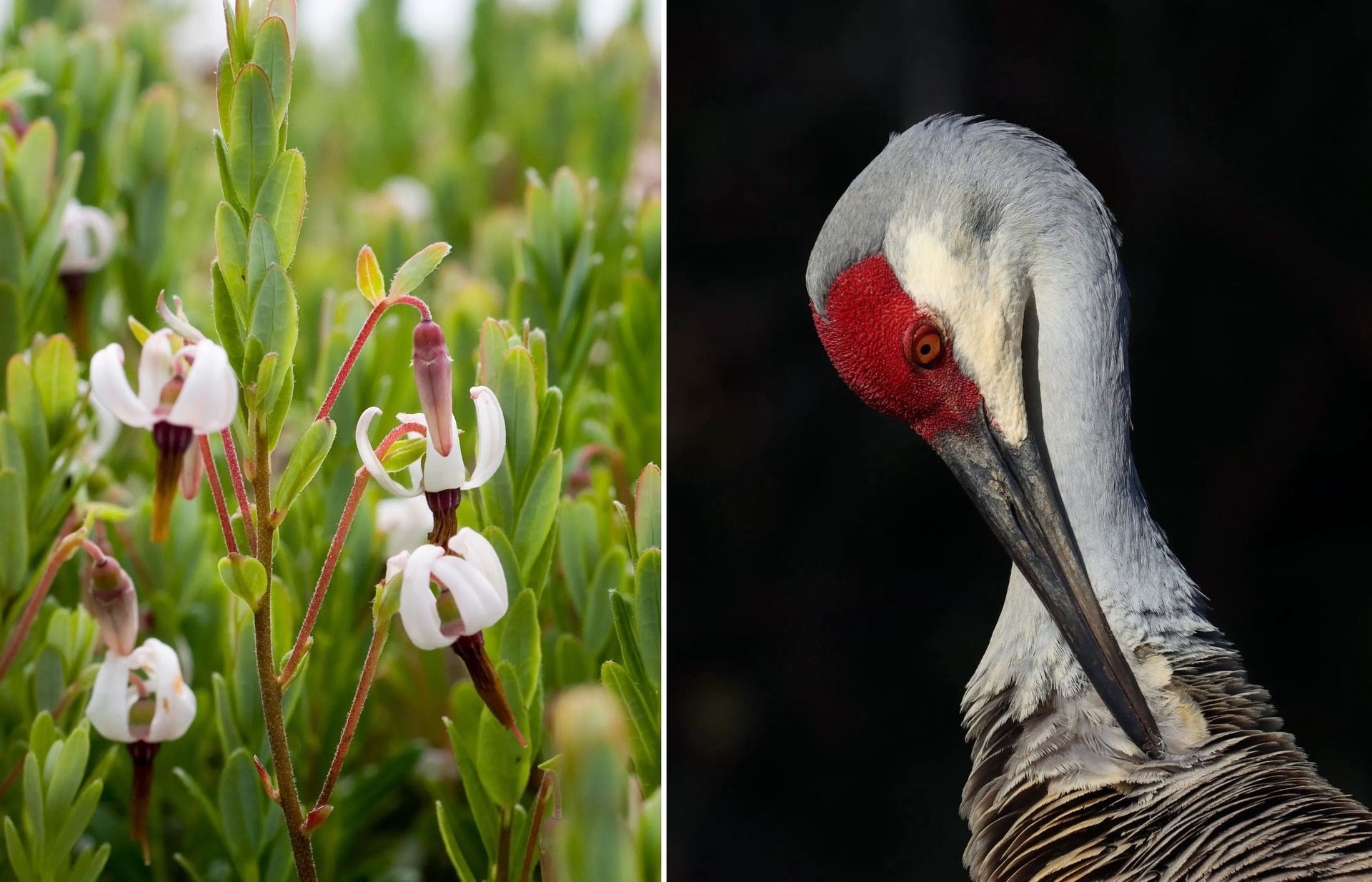 Cranberries have a long history in New England, from the many centuries of multiple uses by Native Americans, to the European settlers who successfully cultivated them into a commercial product enjoyed throughout the world. The name "cranberries" is credited to the first English settlers. The plant's flowers reminded the settlers of a sandhill crane’s head drooping to the ground. Thus, they called the berry “craneberry”, which evolved into present day cranberry.