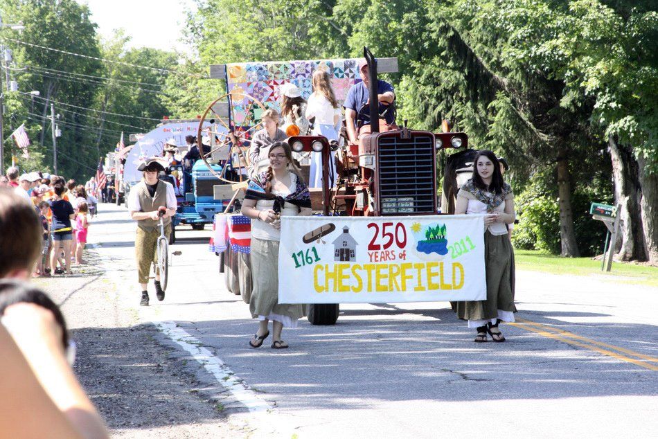 In the past, Old Home Days (OHD) in Chesterfield were either a day or a weekend event. The weekend usually began with a flag ceremony, grand parades, games or competitions for children and adults, sometimes a band concert, and the very popular Firemen Muster, followed by a special dinner (chicken barbecue, ham & beans, etc.) and a dance. If it covered a weekend, Sunday breakfast was usually offered before church services. Afterwards, folks may have enjoyed a craft show and a horse show. Usually, the event concluded in a pick-up softball game (married men against singles, one section of town against another, etc.