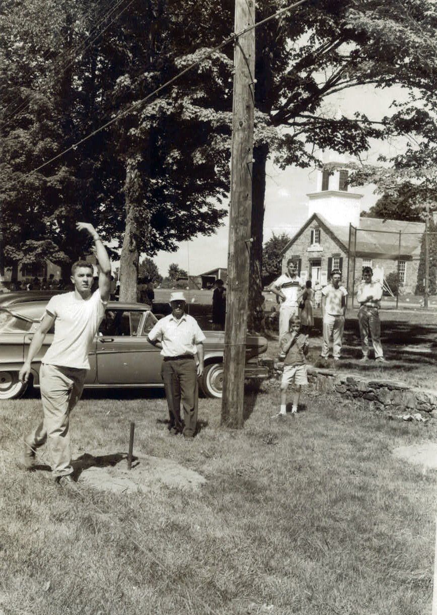 Activates included the age old standards played recently. However, some have been lost in time. Children were challenged in a jello eating contest, to find pennies in a pile of sand, or their shoes in a heap of sawdust. Macaroni threading was for the younger set, while their parents competed in the thread and needle contest (a tag team relay involving a man’s ability to thread a needle). A peanut push required a contestant to push a peanut with his/her nose over a grassy course. (There were fines for divots.) While horseshoes were for men only, rolling pin throwing was an exclusive women's sport. The goal was to hit the head of a dummy but a miss in the right location created giggles