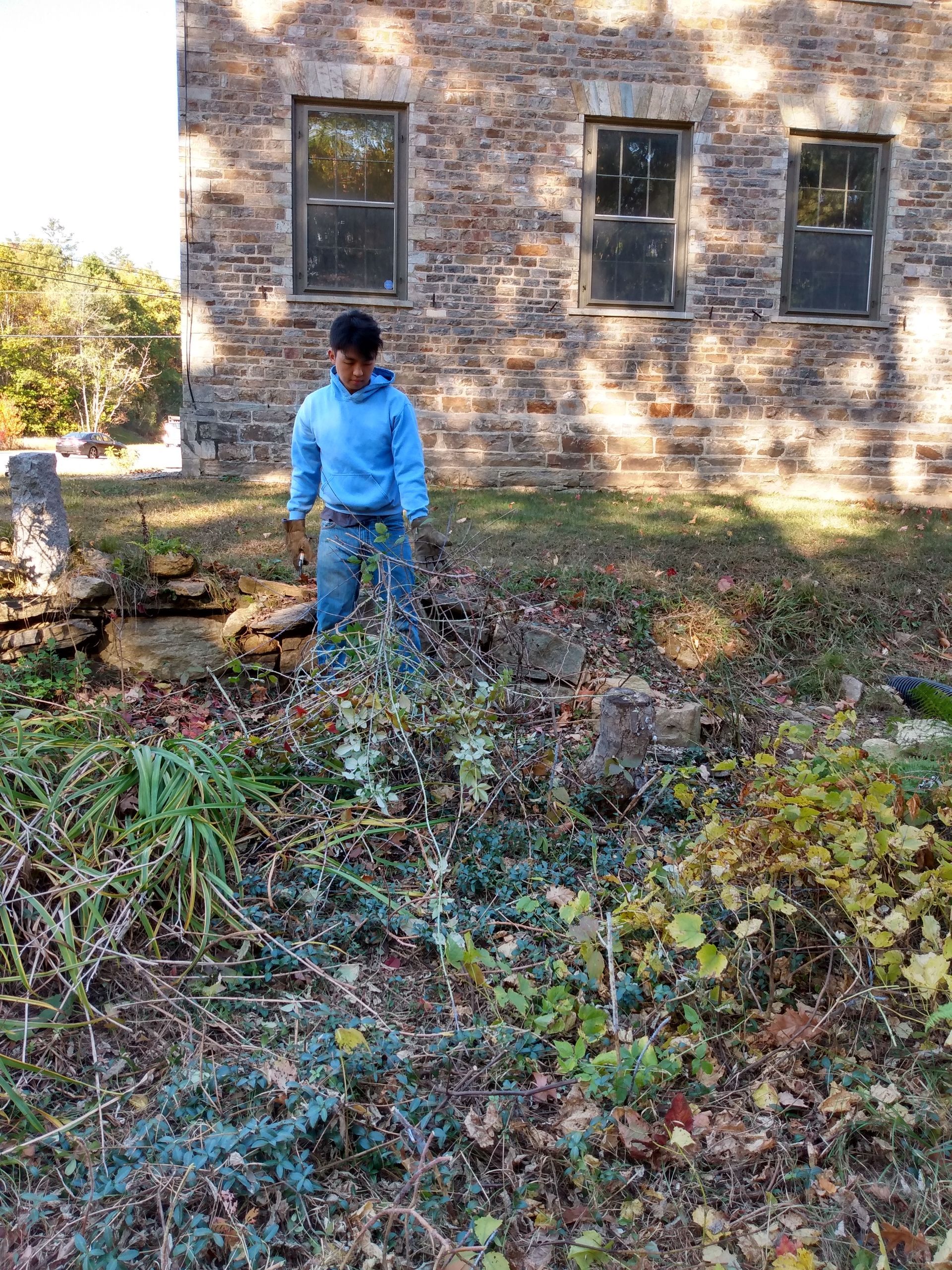 Jeffrey Baker was hired to repair the dilapidated east stonewall