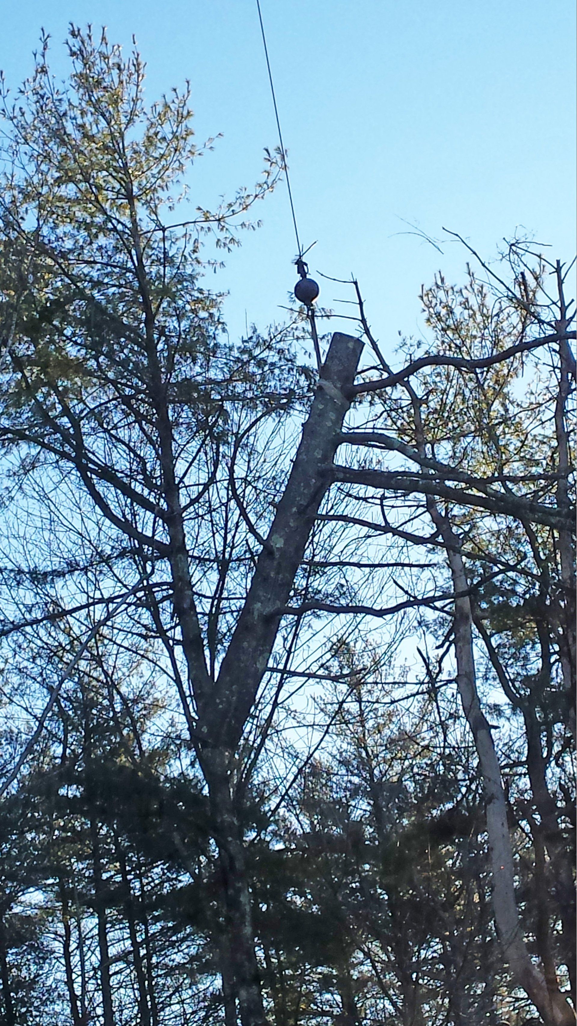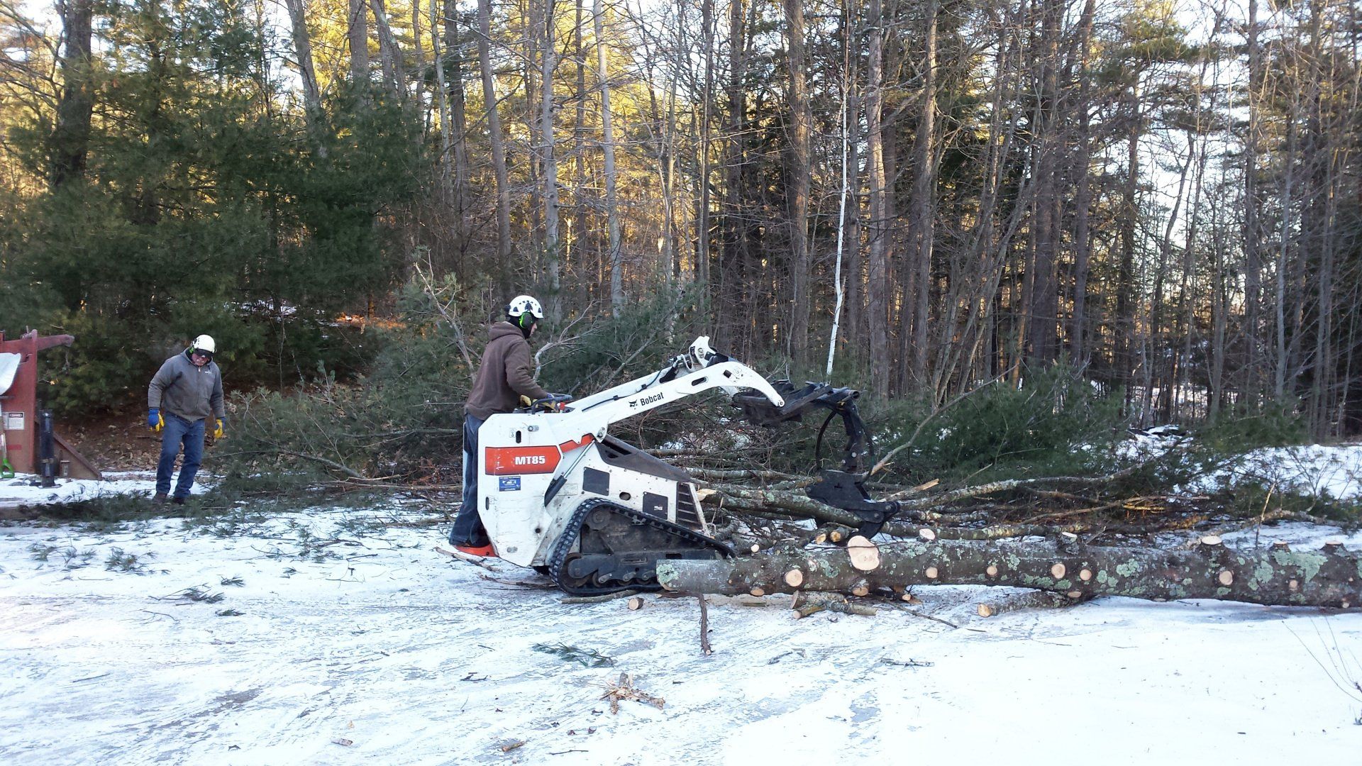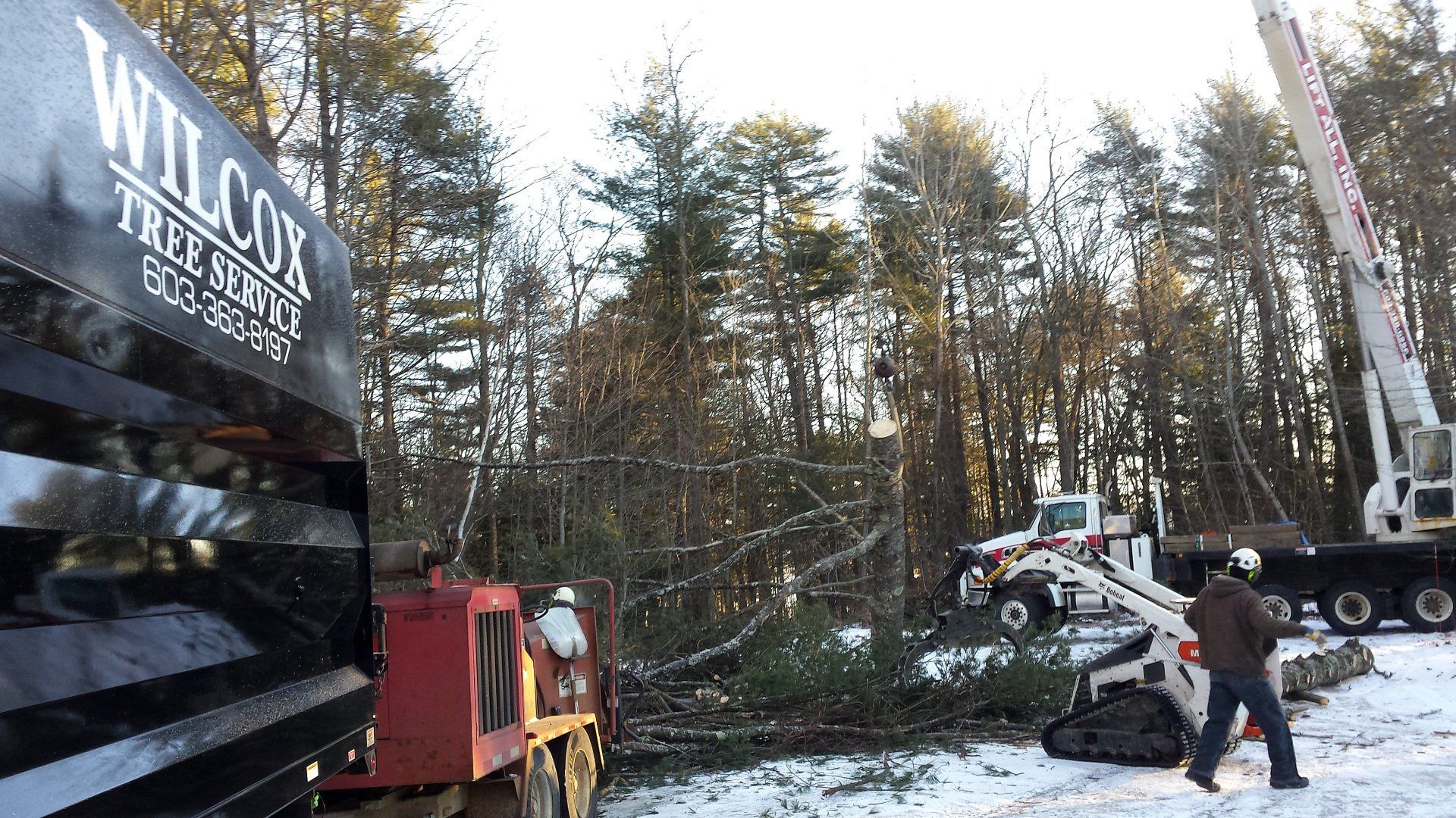 Wilcox Tree Service (below) solved some of the tree issues. Later in the year, the NH Highway Department redirected drainage from the parking lot and removed the two diseased maples along Route 63. The removal made a better site line for traffic.