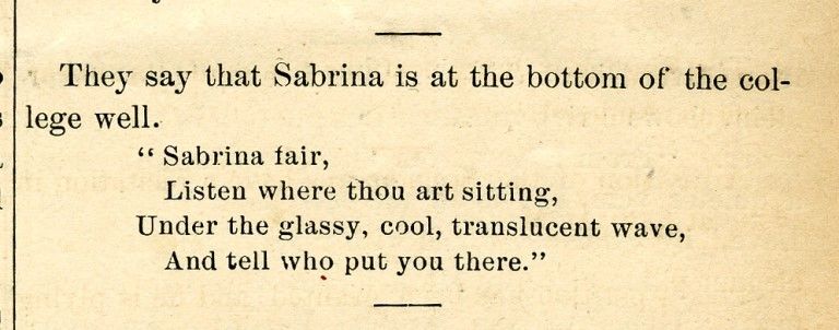 It began in 1857 when MA Lt. Gov. Hayden donated a 350lb bronze statue of the water nymph Sabrina to the then all male Amherst College. For several years she sat on a stone pedestal as a garden decoration until, beginning sometime in the 1860s, she was subjected to numerous undergraduate pranks. These stunts included painting her black or parti-colored, plunging her into a barrel of tar, and concealing her semi-nude state with stolen Victorian undergarments from a nearby lady’s academy. Professors would discover her attending their classes or see her perched upon some roof top. Finally in 1884, the administration had enough and ordered her destroyed. But the college janitor didn’t have the heart and instead hid her in his barn.