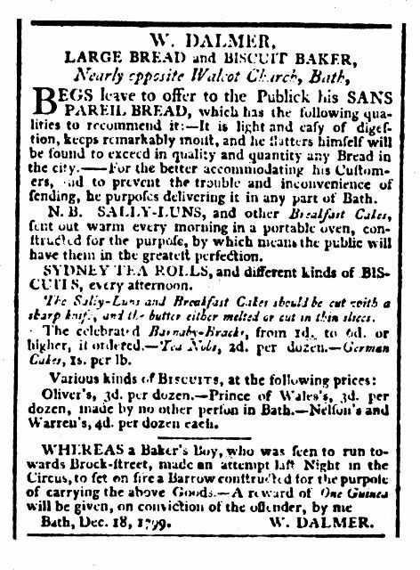 Sally Lunn buns fall into a category all their own. They have been described as part bun, part bread, part cake. Legend has it, they first appeared in Bath, England in 1680. Solange Luyon, a young Huguenot fleeing persecution in France, supported herself by selling from a basket a rich, generous brioche-like bun called a “soleil et lune” in the streets around Bath Abby. The English anglicized her name into Sally Lunn. Her product’s popularity earned her full-time employment at a bakery. Eventually, her unique buns were in such high demand that they became a Bath culinary attraction. Rival bakeries were unable to duplicate the recipe, resulting in numerous Sally Lunn bun recipes emerging. One of the earliest was published sometime around 1780. The Bath bakery where she worked is now "The Sally Lunn Historic Eating House" and claims to have the closely guarded secret recipe. However, even the authenticity of that recipe is in question!