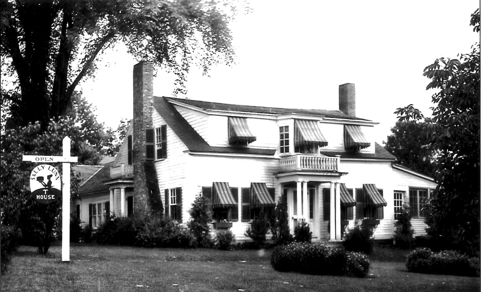 In 1927, Edith Wood Stevens arrived in Spofford and opened the Sally Lunn T House. She named it after the famous English tea cakes, the Sally Lunn buns. Eventually, Edith became "Sally", with few people knowing her given name. She made a striking appearance, always dressed in pure white clothing accessorized by long, flowing scarves and with her head wrapped in a white turban. She complimented her persona by driving a white Cadillac convertible.