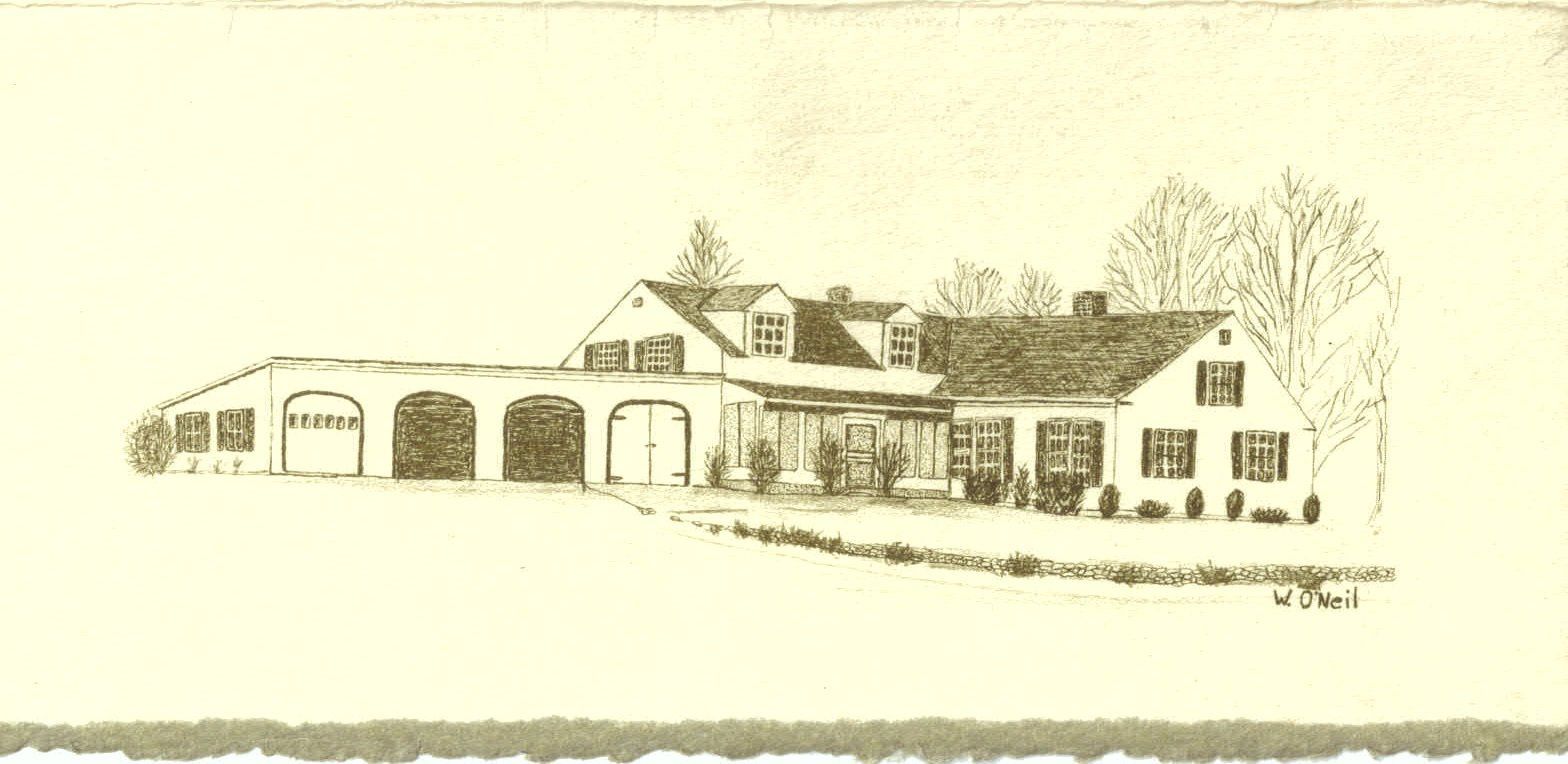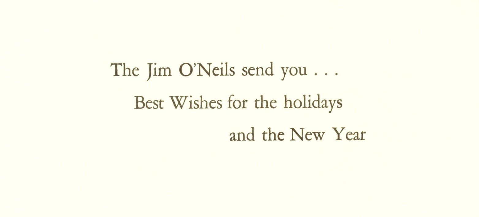 This card could not be overlooked. It is a technical drawing by Billy O'Neil of the family home. It was sent out as Holiday Greetings from the James O'Neil Family.