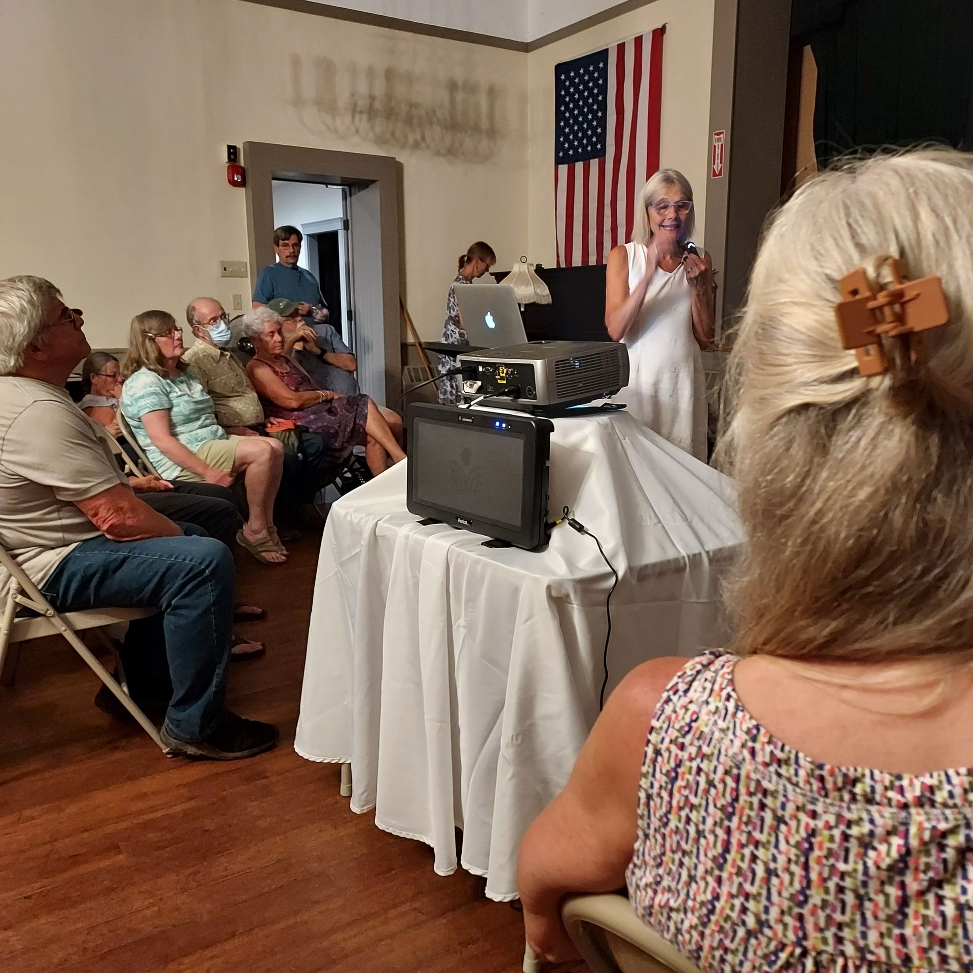 This year’s programs were well received. Rebecca Rule started the season off with “That Reminds Me of a Story”. Lynne Borofsky filled the Town Hall to standing room only with “The Life and Times of Madame Sherri". Board member Roland Vollbehr filmed the presentation. The film is still in production with Brattleboro Community TV. “Amelia Earhart” (left) portrayed by Sheryl Faye, astonished everyone with the convincing impersonation of this famous woman’s life.