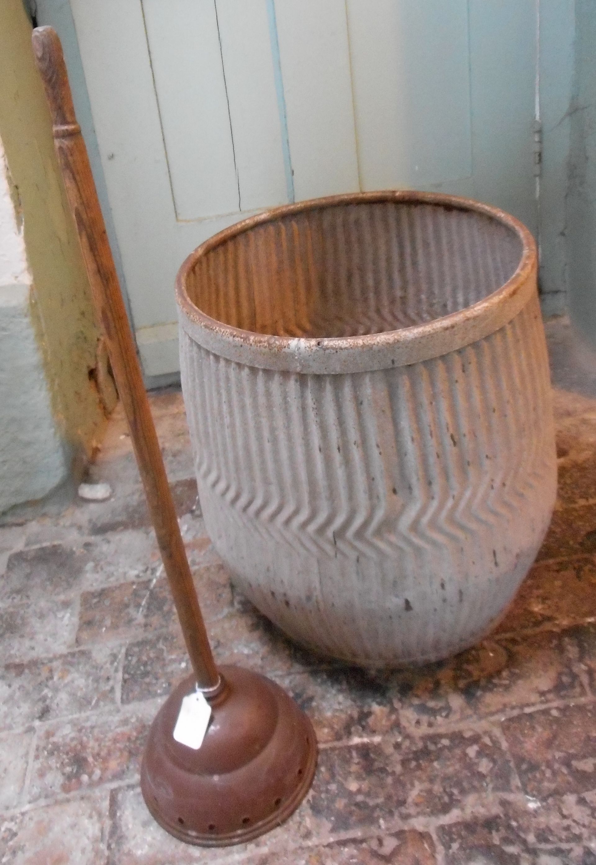 Of course, there were chores. One very memorable one was washing clothes. Grandfather had an antique tub and posh (oval suction cups attached to a long handle). Hot soapy water and clothes were placed in the tub and the posh was hand rotated to agitate the mixture until the clothes were suitably clean. After rinsing, the garments were spread out onto the grass to dry. Their resulting fresh and clean smell remained one of Gladys' cherished life long memories. After gathering them, heavy black foot irons which rested on the wood stove, would be used to press them.