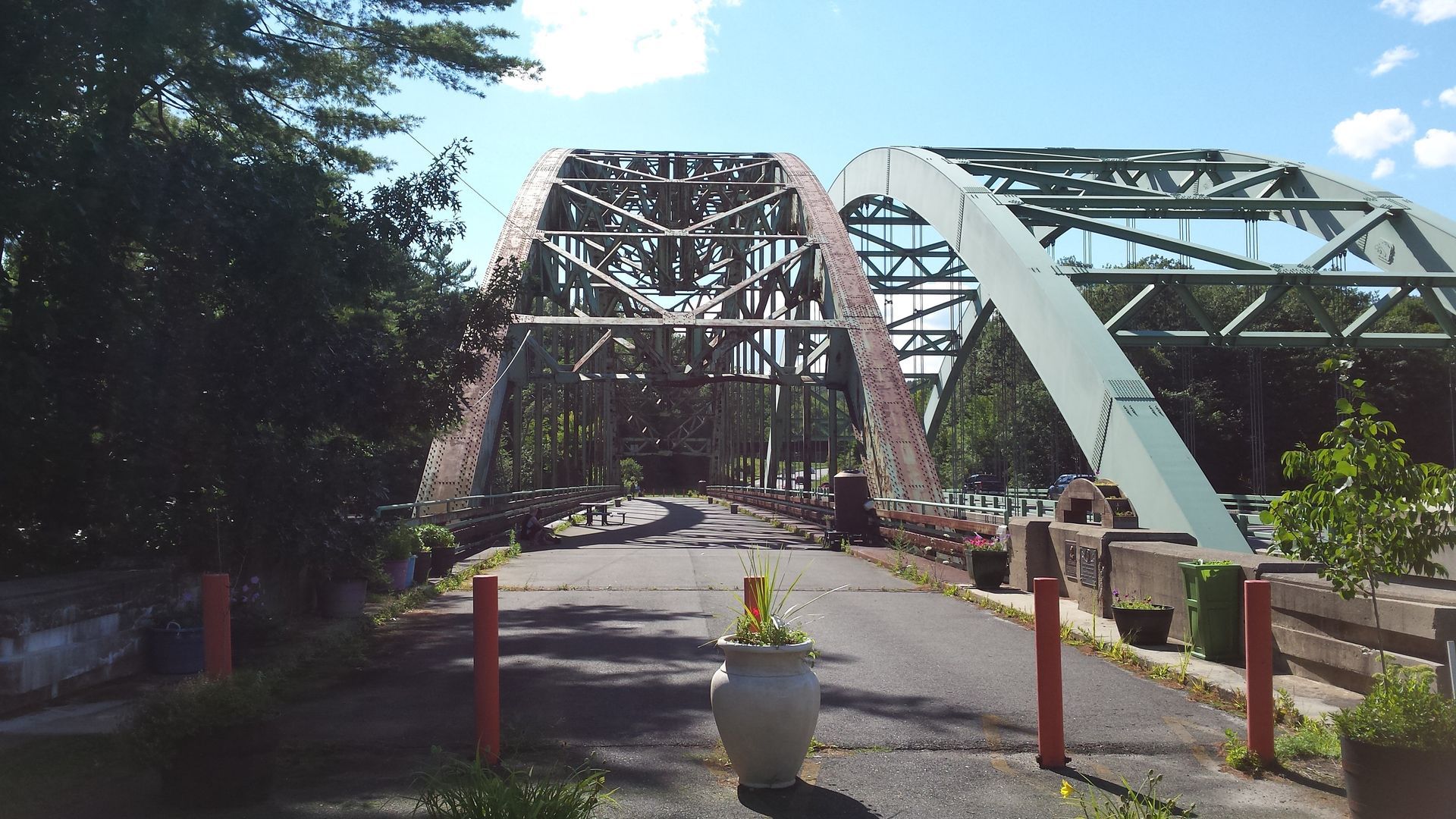 In 1937, the Navy Seabees built the old bridge's replacement, a two-hinged, arched steel bridge. Its design won the American Institute of Steel Construction 1937 award for the “Most Beautiful Steel Bridge” in Class C. In 2003, a bridge of similar construction was built next to the 1937 bridge. It was designed to carry heavier loads; it has a wider deck and more road clearance. The older bridge became a pedestrian bridge and was renamed “The Harlan Fiske Stone Bridge” after Chesterfield born US Supreme Court Chief Justice Stone.